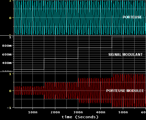 - La modulation d'amplitude, qui ne touche pas à la fréquence de la porteuse, juste à son amplitude.
