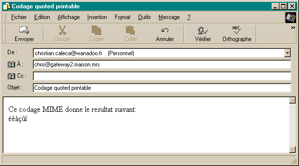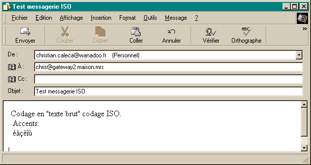 Outlook Express propose également ce mode de codage, lorsque l'on choisit le « texte brut ». On essaye…