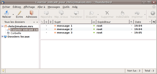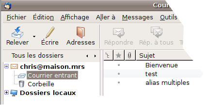 Permet de sélectionner un dossier et d'avoir un compte rendu de son contenu. Pour les besoins, envoyons un message à chris@maison.mrs et manipulons un peu :