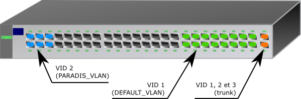 - PARADIS_VLAN, de VID 2, qui accueillera le LAN des hôtes connus,