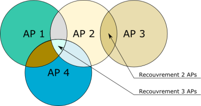 Si l'on souhaite obtenir une couverture convenable sur un site donné, il sera probablement nécessaire de placer plusieurs points d'accès. Dans un tel cas, les zones de couverture de plusieurs points d'accès viendront probablement se recouvrir partiellement.