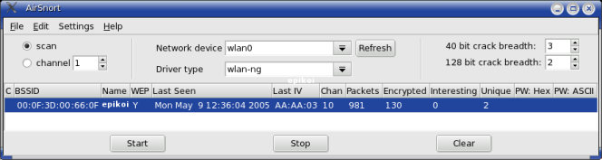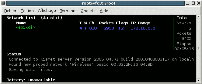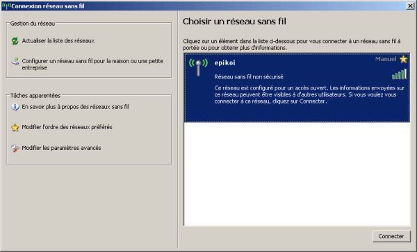 Ce dernier est probablement le plus intéressant des trois, mais il y en a encore d'autres… Nous anticipons un peu sur la suite, la capture d'écran est faite avec une protection WEP mise en place, que nous verrons plus loin.