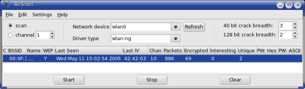 D'ailleurs, en laissant tourner Airsnort ou Airodump, sitôt qu'un client viendra se connecter au réseau Wi-Fi, le SSID apparaîtra.