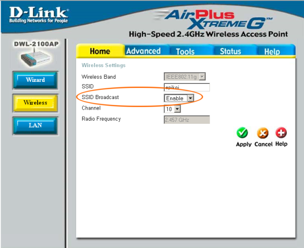 Tous les points d'accès ne savent pas forcément inhiber cette fonction de publication. C'est cependant le cas sur la borne que nous utilisons pour cet exposé :